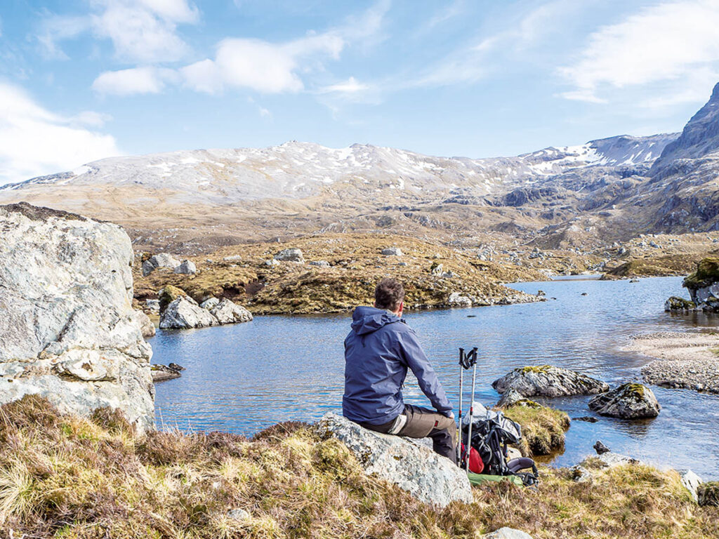 Draußen prasselt der Regen aufs Zelt und ein böiger Wind rüttelt an der Plane. Drinnen habe ich gerade mühsam ein Auge aufgekniffen an diesem ungemütlichen Morgen in der Mitte von Nirgendwo. Rücken, Beine und Nackenmuskeln fühlen sich an wie durch die Mangel gedreht, an der rechten Ferse brennt eine Blase. Alles sträubt sich gegen das Aufstehen. Eine gute Übung für Kommendes: So ungefähr muss es sich anfühlen, wenn man 100 Jahre alt ist. Und mich beschleicht die Frage, ob es womöglich eine Schnapsidee war, den »Cape Wrath Trail« (CWT) durchs gottverlassene Hinterland der schottischen Westküste gehen zu wollen …