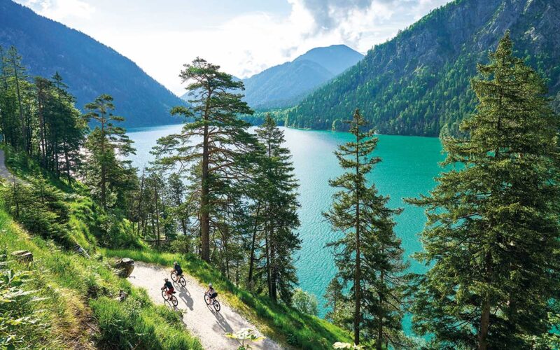 Viel zu oft werden im heutigen Social-Media- Zeitalter Bilder und Clips unter dem Hashtag #bikeadventure gepostet. Doch auf diesen magischen Morgen passt der Begriff wie die oberbayerische Lederhos’n zum Dirndl. Sumpfgräser leuchten wie kleine Wattebäuschchen. Als würden sie sich in der Sonne räkeln, winden sich die Ammer und ihre zufließenden Bäche durch diese Urlandschaft – ein Relikt der letzten Eiszeit vor rund 10.000 Jahren. Nur das Surren des Freilaufs und das Knirschen der Reifen auf dem Schotterweg sind zu hören. Der Blick führt hinauf zu den Bergketten überm Graswangtal. Lautlos segelt ein Steinadler in den Lüften und kontrolliert, was gerade in seinem Revier passiert.