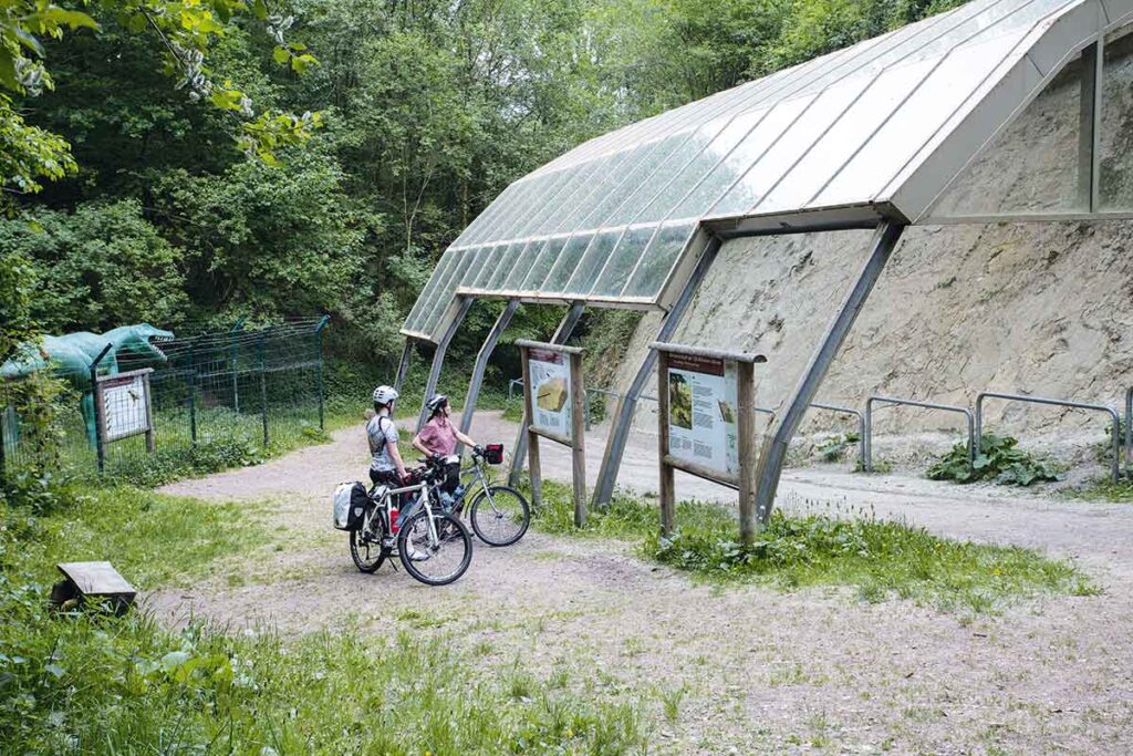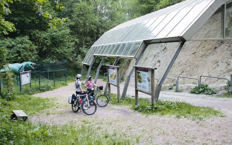 Die DiVa-Tour beginnt in Bramsche – und allein der Name verrät, was diese Rundroute so besonders macht: DiVa steht für »Dinosaurier« und »Varusschlacht«, zwei Themen, die das Osnabrücker Land prägen. Bevor wir aufs Rad steigen, lohnt ein Besuch im Tuchmacher Museum Bramsche, das eindrucksvoll von der jahrhundertealten Tradition der Bramscher Tuchmacher erzählt. Historische Maschinen laufen hier noch heute, und das berühmte »Bramscher Rot« – ein tiefes, warmes Wollrot – ist ein Markenzeichen der Stadt. Zwischen Webstühlen, Walkmühle und Färberei wird das Handwerk lebendig, und man versteht, wie eng Wasserkräfte, Geschick und regionale Identität miteinander verbunden waren.