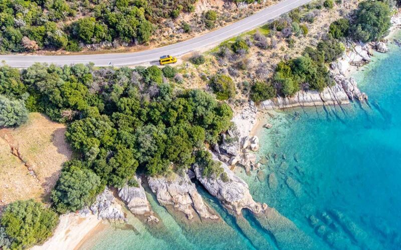 Es gibt Straßen, die mehr sind als Asphalt. Die Küstenstraße am Golf von Korinth gehört dazu: Rechts das türkisfarbene Meer, das in der Sonne glitzert, links Olivenhaine und karge Hügel, dazwischen weiß getünchte Dörfer. Wer hier mit dem Camper unterwegs ist, fährt nicht einfach von A nach B – er rollt durch Postkartenmotive. Und dann sind da die kulturellen Schwergewichte: das antike Heiligtum von Delphi, das byzantinische Kloster Hosios Lukas, lebendige Hafenstädtchen und Ouzerien, in denen der Abend bei einem Glas Anisschnaps und Meeresrauschen ausklingt. Die Route von Mesolongi bis Athen vereint Natur, Geschichte und Genuss auf engem Raum – ideal für eine entschleunigte Camperreis
