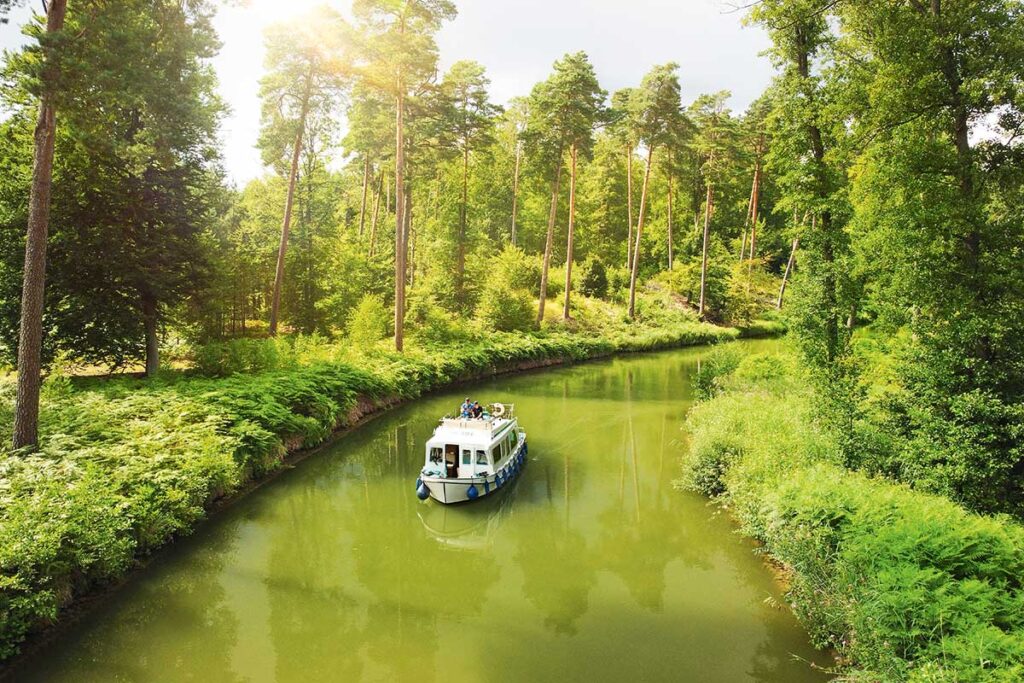 »Hausbooten begegnet man wie Wanderern in den Bergen«, sagt ein Rentnerpaar, das wir an einer Schleuse treffen. »Man grüßt, tauscht ein paar Worte – und jeder zieht zufrieden weiter.« Die Schleusen sind die Treffpunkte einer Gemeinschaft aus Freigeistern: Familien mit Kindern, die an Deck kichern; Paare, die mit einem Glas Wein auf den Anstieg des Wasserpegels warten; Abenteurer, die ihre Kajaks mühsam neben größeren Booten balancieren.