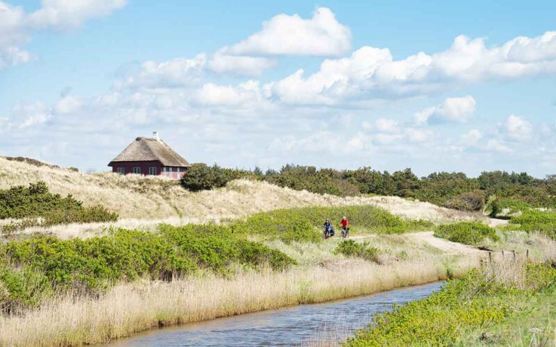 Die langen Strände Jütlands zählen zu den großen Attraktionen der Region. Auf einer Radtour lernt man aber auch die anderen Facetten dieser dänischen Feriendestination kennen – und begegnet dabei immer wieder spannenden Spuren der Vergangenheit.