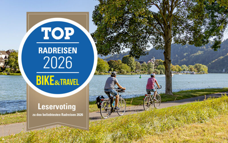 Zum wiederholten Mal lud die Bike&Travel-Redaktion zur Wahl der beliebtesten Radreisen ein. Mehr als 37.000 Stimmen wurden abgegeben und zeigen, welche Touren und Regionen bei den Leserinnen und Lesern besonders hoch im Kurs stehen. Die Ergebnisse des Bike&Travel-Leservotings 2026 sowie die ausgezeichneten Sieger stellen wir im Folgenden vor.