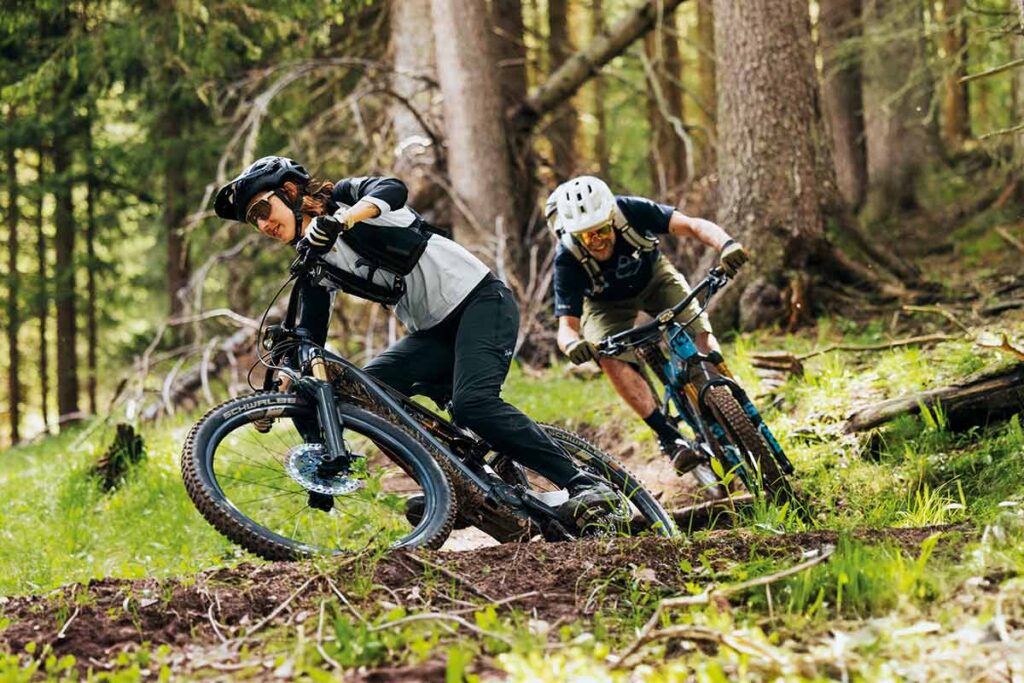 Knödel-Tris, Apfelstrudel, ein Espresso mit Blick auf die Bergkulisse: Auf der Hütte haben wir aufgetankt, Kopf und Beine sind wieder frisch. Jetzt kribbelt es in den Fingern. Denn der eigentliche Spaß steht uns noch bevor: die Abfahrt. Statt der Forststraße, die wir vom Aufstieg kennen, führen jetzt schmale Trails ins Tal. Schon nach den ersten Metern wird klar: Hier ist nichts zahm.