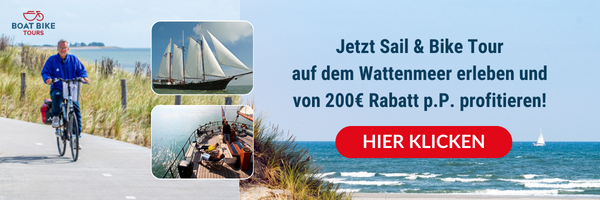 Machen Sie sich bereit für ein unvergessliches Naturerlebnis, das unter die Haut geht und den Kopf frei macht: Entdecken Sie mit Boat Bike Tours die wilden Weiten des holländischen Wattenmeers und unternehmen Sie eine abenteuerliche Reise mit Rad und Segelschiff! Buchen Sie jetzt Last Minute und profitieren Sie von bis zu 200 Euro Rabatt pro Person.