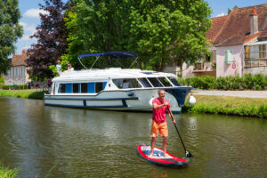 Stand Up Paddling zu jeder Tageszeit Einfach Stand Up Paddle Board auspacken und ab aufs Wasser. Bei einem Hausbooturlaub ist das jederzeit möglich. Befahren Sie