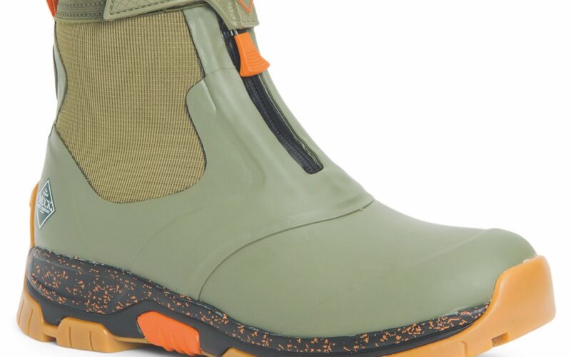 Optisch sticht der Apex von Muck Boots (204 Euro) durch seinen Material- und Farbmix gleich ins Auge. Der sportliche Kurzstiefel mit Reißverschluss wurde auf einer Plateausohle konstruiert, so dass er sich perfekt für längere Touren über unebenes Terrain und querfeldein eignet.