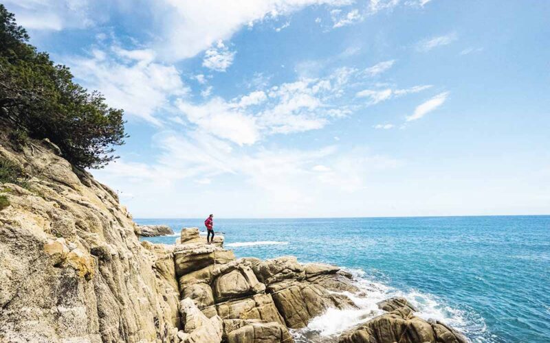 Die rot-weiß markierte Route folgt alten Schmuggler- und Küstenwächterpfaden, die einst die Grenzpolizei nutzte, um die katalanische Küste zu überwachen. Heute verbinden diese Pfade – auf Katalanisch »Camins de Ronda« – idyllische Buchten wie die Cala Jóncols, das künstlerische Cadaqués und das mittelalterliche Tossa de Mar zu einer unvergesslichen Trekking-Erfahrung. Über 220 Kilometer wilde Felsklippen, duftende Pinienwälder und viel mediterraner Flair erwarten Wanderer auf diesem Premium-Fernwanderweg entlang der Costa Brava.