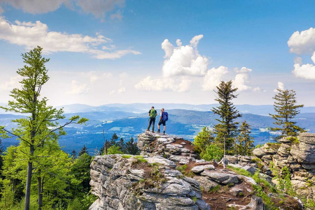 Wandern im niederbayerischen Arberland, das heißt, den Bayerischen Wald in seiner ganzen Vielfalt kennenlernen. Hier kann man, vom Tal des Schwarzen Regen bis hinauf auf den Großen Arber, die unterschiedlichsten Wandertouren unternehmen – von malerisch-lieblich bis wild und urwüchsig. Zum Wandern und Pilgern lädt auch der Gunthersteig ein.