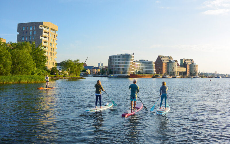 Die Ostseestadt Rostock kann auf eine bewegte Geschichte zurückblicken. Vor allem die Hansezeit im Mittelalter bringt man mit der Stadt in Mecklenburg-Vorpommern in Verbindung. Heute kann man sich Rostock und Umgebung in aller Ruhe auf dem SUP-Board anschauen. Björn Nehrhoff von Holderberg stellt fünf schöne Touren vor.