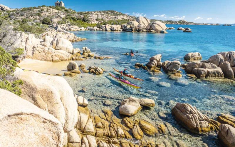 Es ist nicht einfach, etwas Handfestes über das Kajakfahren in der Inselwelt des La-Maddalena-Archipels herauszufinden. Dass dort Paddeln erlaubt ist, das ist uns schnell klar. Doch das Archipel ist ein Nationalpark, der »Parco Nazionale dell’Arcipelago di La Maddalena«, und einige Teile der Inseln sind stark reglementiert. An manchen der wunderschönen Stränden ist das Anlanden verboten, an einigen darf man zwar landen, aber nicht aussteigen. An manch einer Insel darf man noch nicht einmal entlang paddeln. Ob man im Park wild übernachten darf oder ob das zumindest toleriert wird, davon liest man nichts. Es scheint also verboten.