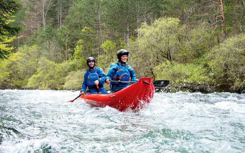 Der Name verrät es bereits, der Rio ist ein Schlauchkanu für den Einsatz auf dem Fluss. Dabei darf es auch ruhig etwas wilder zugehen. Speziell für Wildwasser konzipiert, gibt er nicht vor, ein Allrounder zu sein. Strömung tut dem Paddelspaß mit ihm gut. Der Drop-Stitch-Boden sorgt für eine hohe Steifigkeit und somit für Stabilität und eine ordentliche Beschleunigung, ohne dass die Wendigkeit allzu sehr darunter leidet. Das als Zweier aufgebaute Boot lässt sich aber auch solo paddeln.
